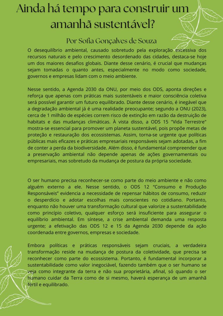 Como forma de introdução à temática, os estudantes fizeram a leitura dos três primeiros capítulos do livro do pesquisador Mauro Galetti, vencedor do Prêmio Jabuti Acadêmico, no ano de 2024. O texto foi amplamente discutido em sala de aula, tanto do ponto de vista temático, quanto do ponto de vista da forma, ou seja, da escrita, por meio da análise das estratégias argumentativas empreendidas pelo autor a fim de convencer os leitores sobre o Antropoceno.