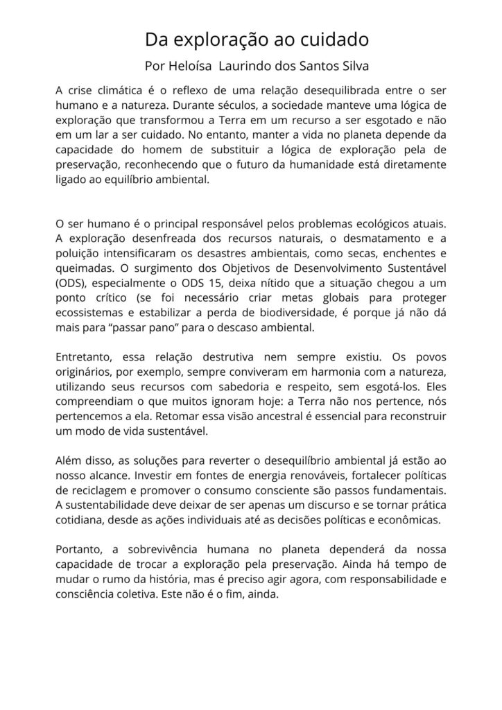 A fim de ampliar o conhecimento e refletir mais sobre a temática, os estudantes fizeram a leitura do capítulo “Uma cachoeira”, do livro Um rio, um pássaro, de Ailton Krenak, cujo pensamento é fundamental para imaginar outras formas de existir, de conhecer e de respeitar a natureza.